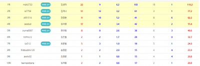 10월 팀 랭킹 순위